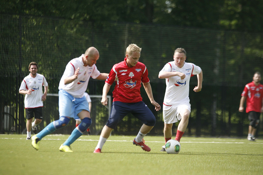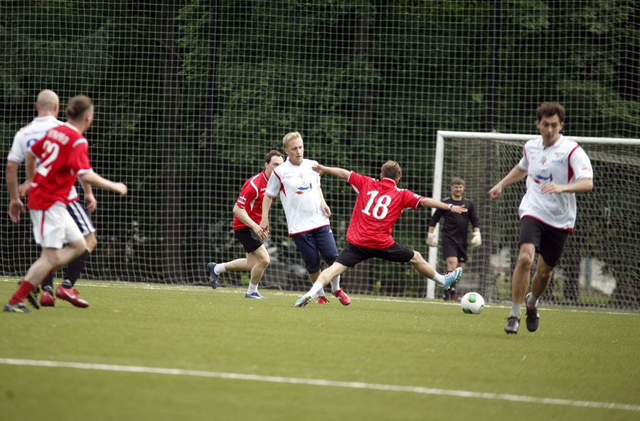 В «Лужниках» состоялась заключительная перед стартом мирового первенства по футболу среди артистов тренировка сборной России.